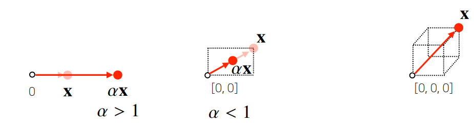 - 이때, 1보다 작은 양의 스칼라를 곱하면 길이가 감소,