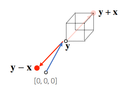 - 두 벡터의 덧셈과 뺄셈은 다른 벡터로부터 상대적 위치 이동을 의미한다.