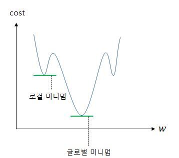 위의 그림과 같이 MSE를 비용함수로 사용했을 때 cost 그래프가 다음과 같이 그려지고 이에 따라서 local minimum에 빠질 가능성이 지나치게 높아 최적의 값을 찾아내는 것이 어렵습니다.