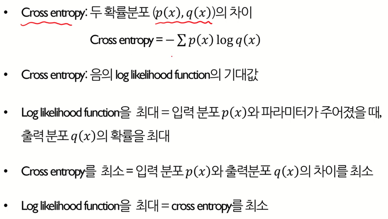 로그 우도식에 (-)를 취하면 Cross Entropy의 정의와 일치하게 됩니다.